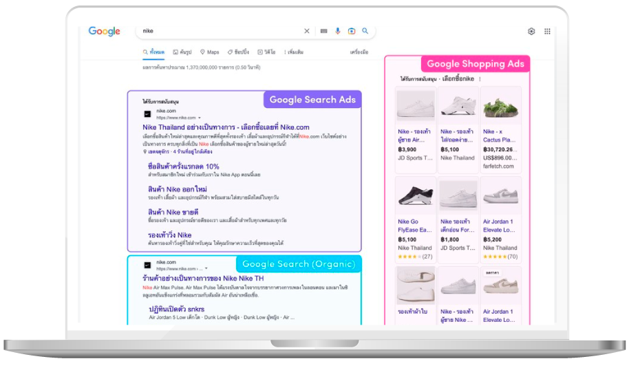 Google Shopping Ads is a new advertising format that Google has recently launched in Thailand. This type of advertising focuses on showing products with prices from the Search page, which will encourage faster purchases. Because buyers will see the product image and price immediately without having to click on the website first. And when we click on the product, it will bounce to the product page, ready to click to order immediately.